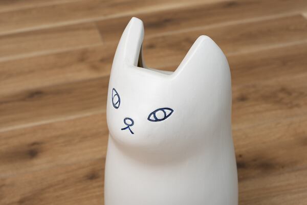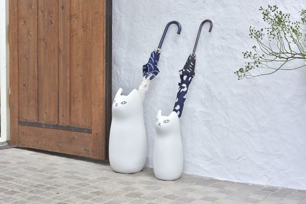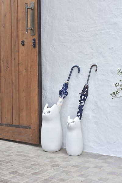 玄関から健気に見送る、コロンとしたシルエットが愛らしい猫の傘立て。