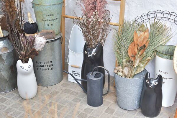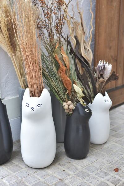 玄関から健気に見送る、コロンとしたシルエットが愛らしい猫の傘立て。