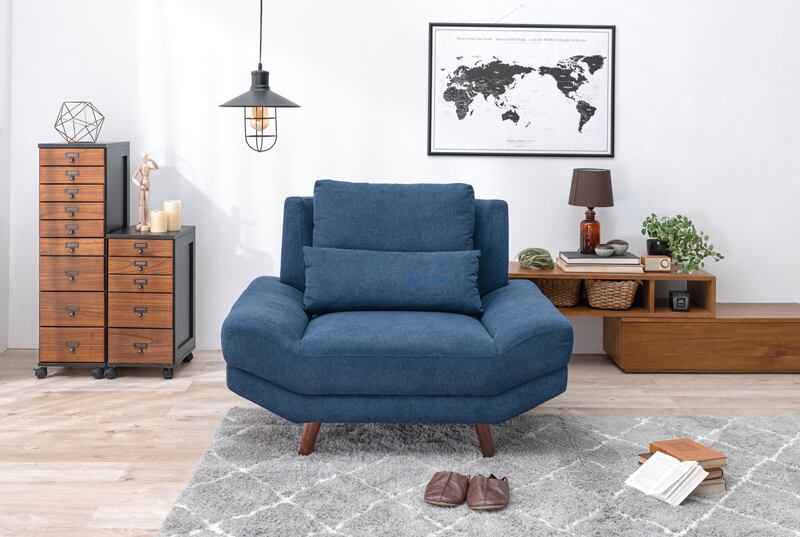 座面サイズが広いので、楽な姿勢でくつろげて、窮屈感なく、1人でゆったりとリラックスできるソファです。脚を付けずにロータイプのソファとして圧迫感無くご使用することも可能です。
