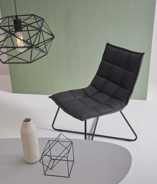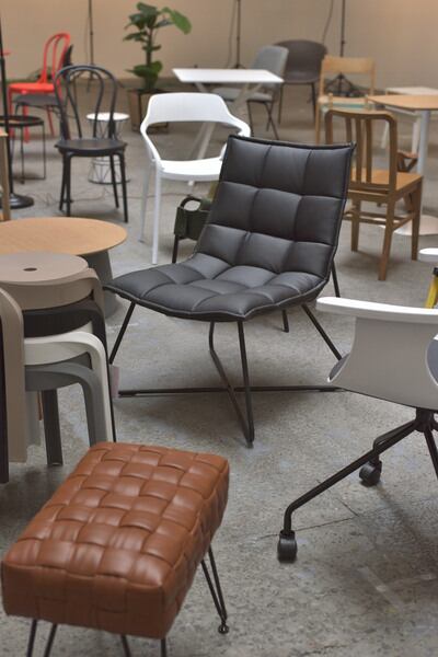 ソフトレザーを使用したおしゃれな雰囲気と特徴的なスチール脚で座り心地もバツグンです。